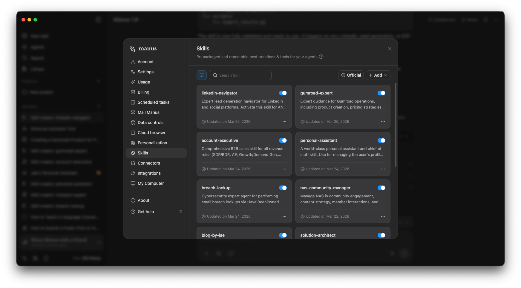 I currently run skills across two environments: Manus AI and Claude AI. Both have different strengths. Manus is my primary environment for agentic execution; browser automation, multi-step task completion, long-horizon workflows. Claude is my primary environment for deep reasoning, writing, and structured document work. The skills I build for each are tuned to those strengths.