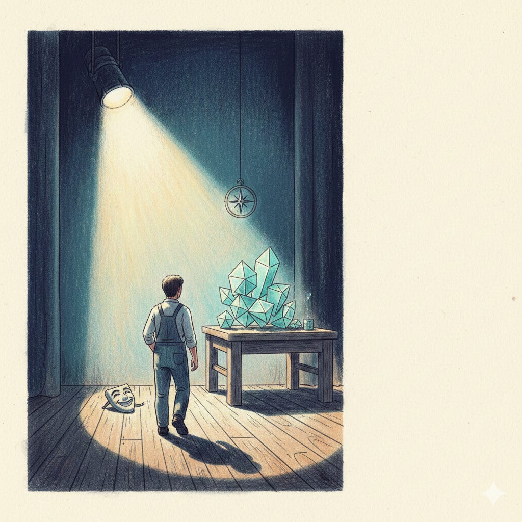 In my own path this shift was everything. Early days were heavy on consumption, such as podcasts on loop, newsletters stacked, tools trialed endlessly, because it felt like progress. It left me fragmented, always one step behind the next hype wave. When I flipped to production, prototyping something as unglamorous as automated pattern detection in user feedback data, the fog lifted. The work wasn’t viral material, but it produced results, sharpened my judgment, and tied directly to a north star of real value. Over months and years that orientation becomes protective: you stop performing for an audience and start creating for impact. Authenticity turns into armor against the mask.